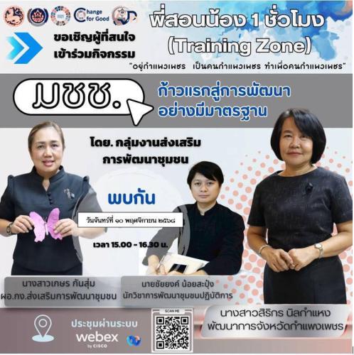 สำนักงานพัฒนาชุมชนอำเภอทรายทองวัฒนา โดยนางสาวสุรีรัตน์ ศักดิ์เดชากุล พัฒนาการอำเภอทรายทองวัฒนา พร้อมด้วยเจ้าหน้าที่พัฒนาชุมชน เข้าร่วมกิจกรรมพี่สอนน้อง 1 ชั่วโมง (Trianing Zone) ตามโครงการริเริ่มสร้างสรรค์ “พัฒนาชุมชนกำแพงเพชร องค์กรแห่งความรู้” (CDD Kamphaengphet Happiness : CDD KPP Happiness)
